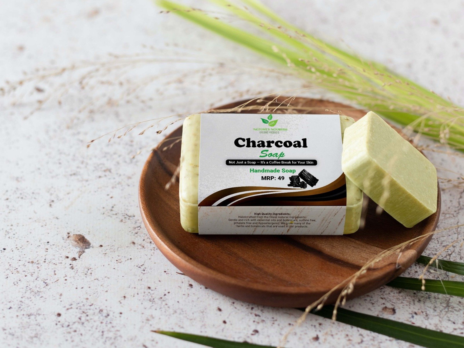 Gently rub the charcoal soap between your hands to create a rich lather.